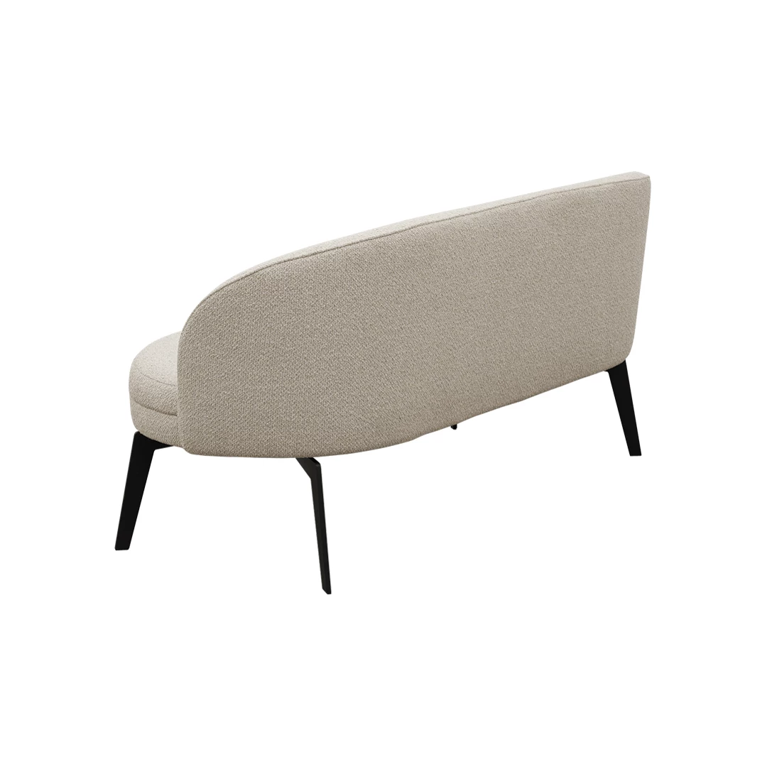 The Briano Sofa features soft, rounded shapes and a gentle seat tilt that ensures balanced, relaxed comfort. Its puffed, enveloping backrest provides supportive coziness, while black metal legs—or optional wooden legs—add versatility. Available in a wide range of professional fabrics, it suits lounges, lobbies, waiting rooms, and other horeca interiors.