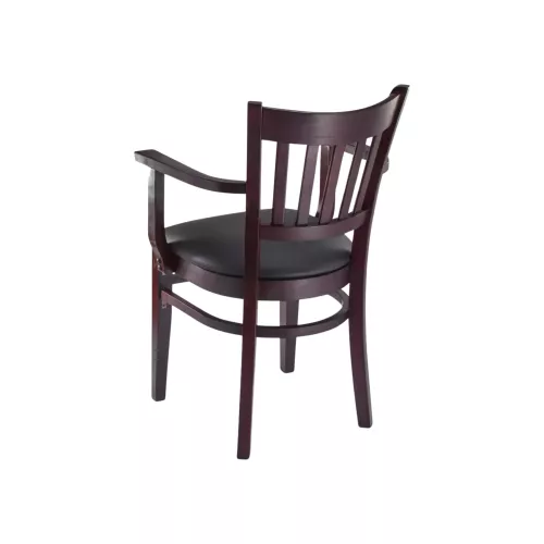 This restaurant chair will make an attractive addition to your restaurant, pool hall, lounge, bar, or other high-traffic venues. Constructed of top-grade, hand-selected European beechwood, it features an upholstered seat and mortise-and-tenon joinery reinforced with metal brackets for enhanced durability. Designed to endure years of heavy use, this chair can be customized with a solid beechwood saddle seat, veneer seat, or upholstered seat to suit your preferences.