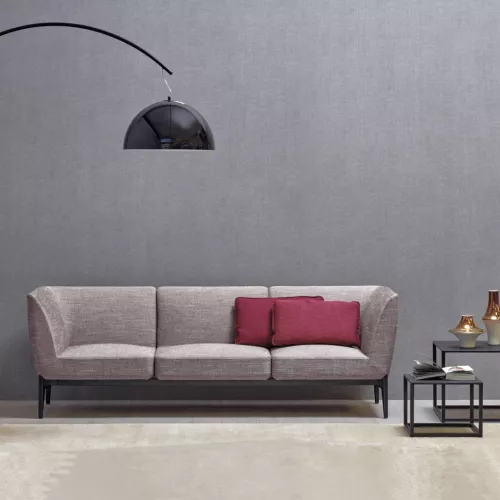 Social is a modular system of linear, corner, curved seatings and poufs that can be matched to create an endlessy replicable sofa ready to host sociable moments. Modular system with two, three or four linear and corner seater in polyurethane foam and elastic belts in the backrest, steel frame and die-casted aluminium legs at the far ends.