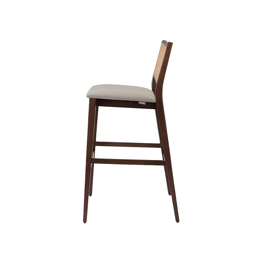 Soul Wicker BK is a lightweight, versatile barstool combining classic design with elegant simplicity. Featuring a solid beech wood frame, an upholstered fabric or faux leather seat, and an optional distinctive wicker backrest, it offers comfort and style. Customizable with various wood stains and upholstery options, it's perfect for diverse horeca environments seeking sophistication.