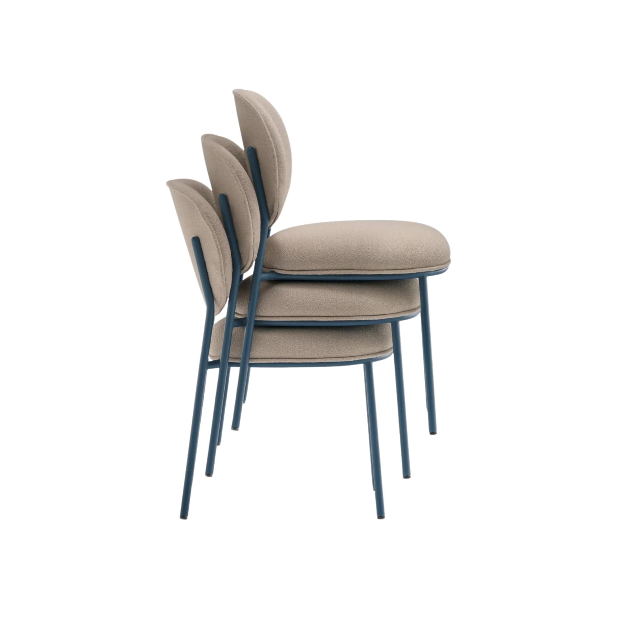 Elegance and sophistication meet comfort and meticulous craftsmanship in the Stiel chair. Defined by its soft, rounded shapes and refined design, Stiel features a polyurethane foam seat and backrest supported by a curved round steel tube frame. The seat and back are seamlessly connected to the structure, with no visible screws, ensuring a clean and elegant silhouette. Designed to enhance comfort and well-being, Stiel is perfect for both relaxing and social spaces. Its wide range of fabric and metal finishes makes it ideal for residential as well as contract environments.