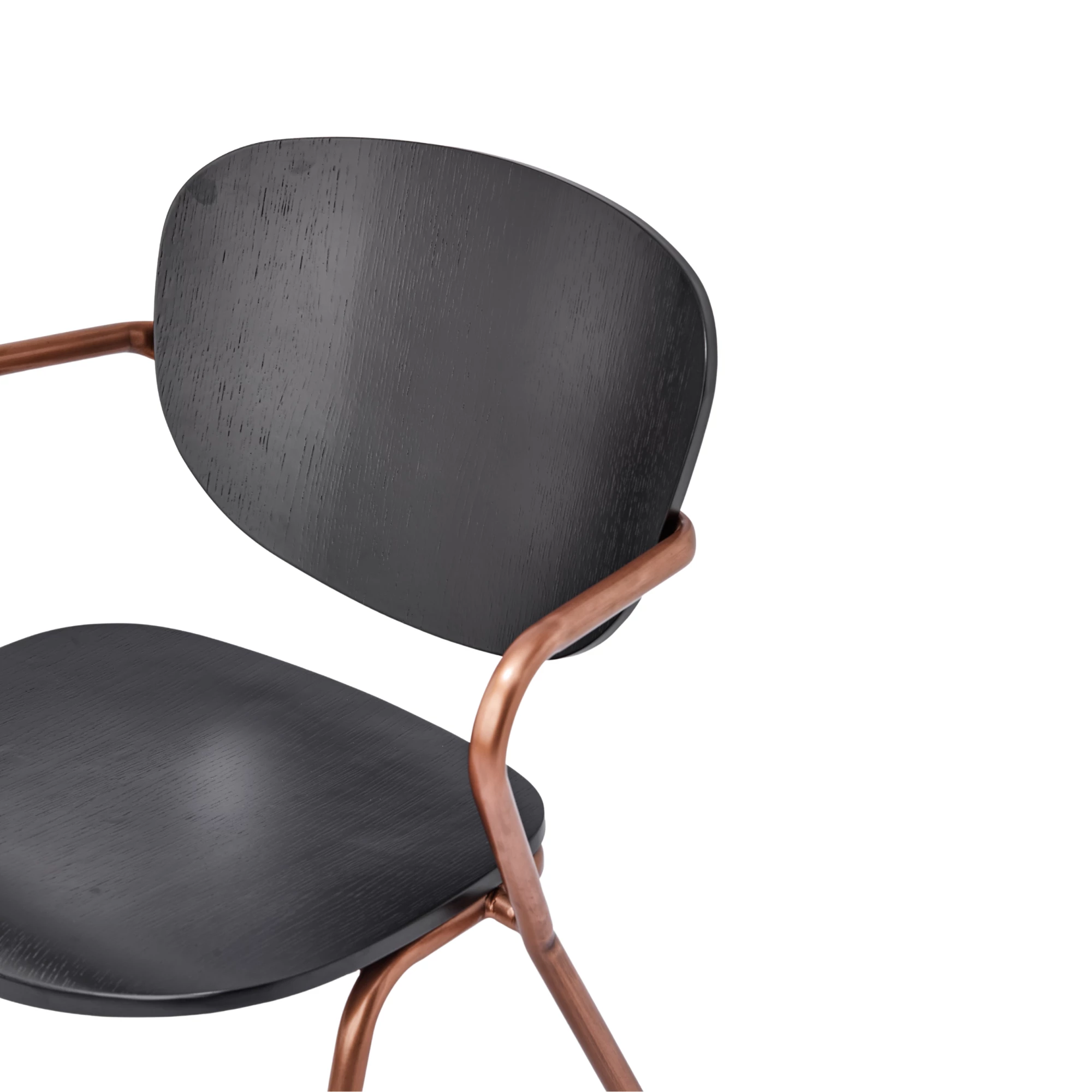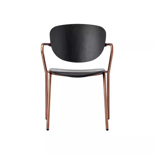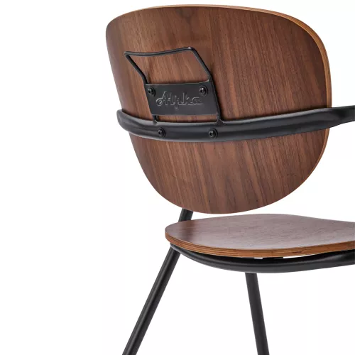 Alphie A ist ein Metallstuhl mit Armlehnen, Stahlrahmen sowie Sitz und Rückenlehne aus Furnier. Er kann individuell angepasst werden und passt sich so verschiedenen Designstilen an. Die ideale Lösung für HoReCa-Bereiche, die Komfort und Stil verlangen.