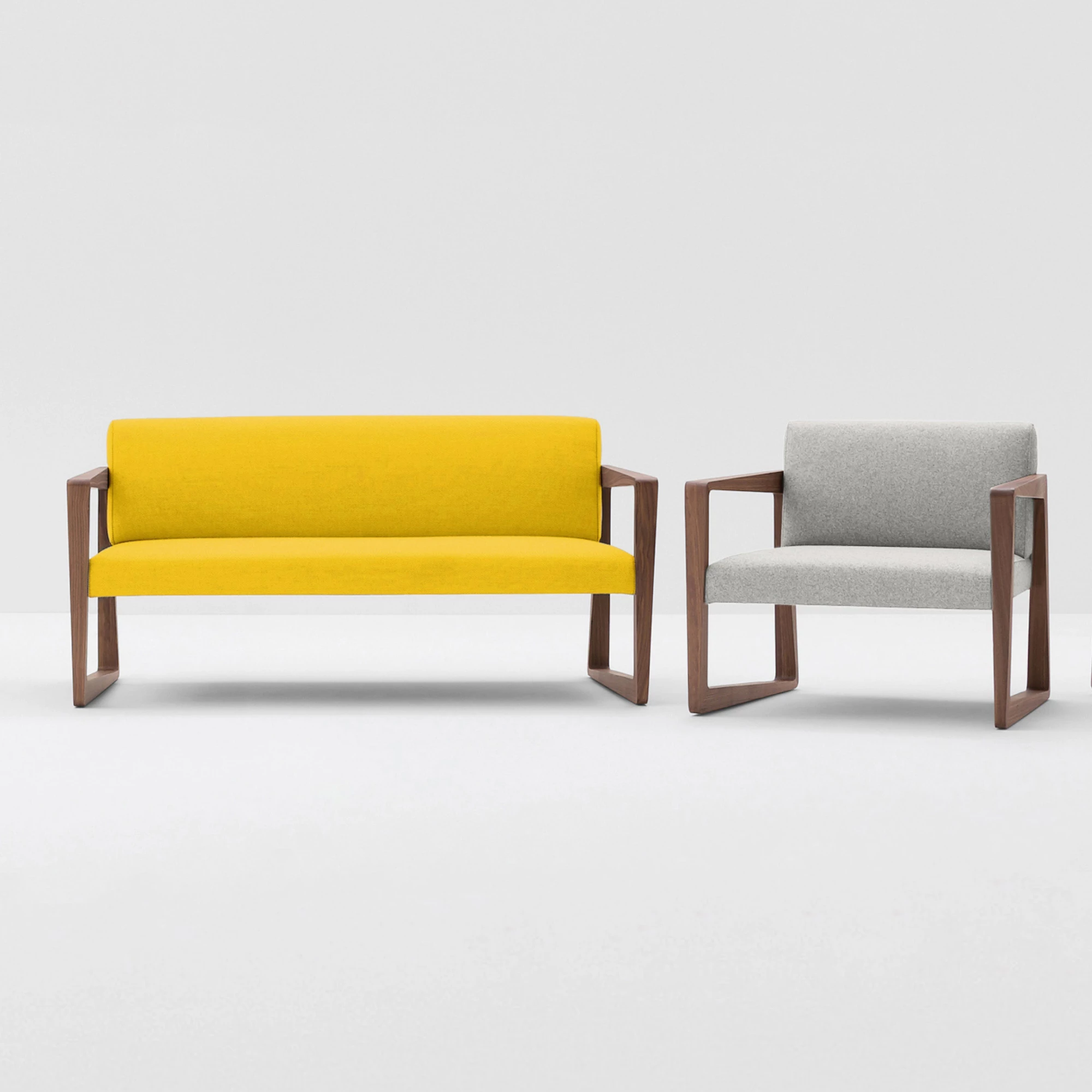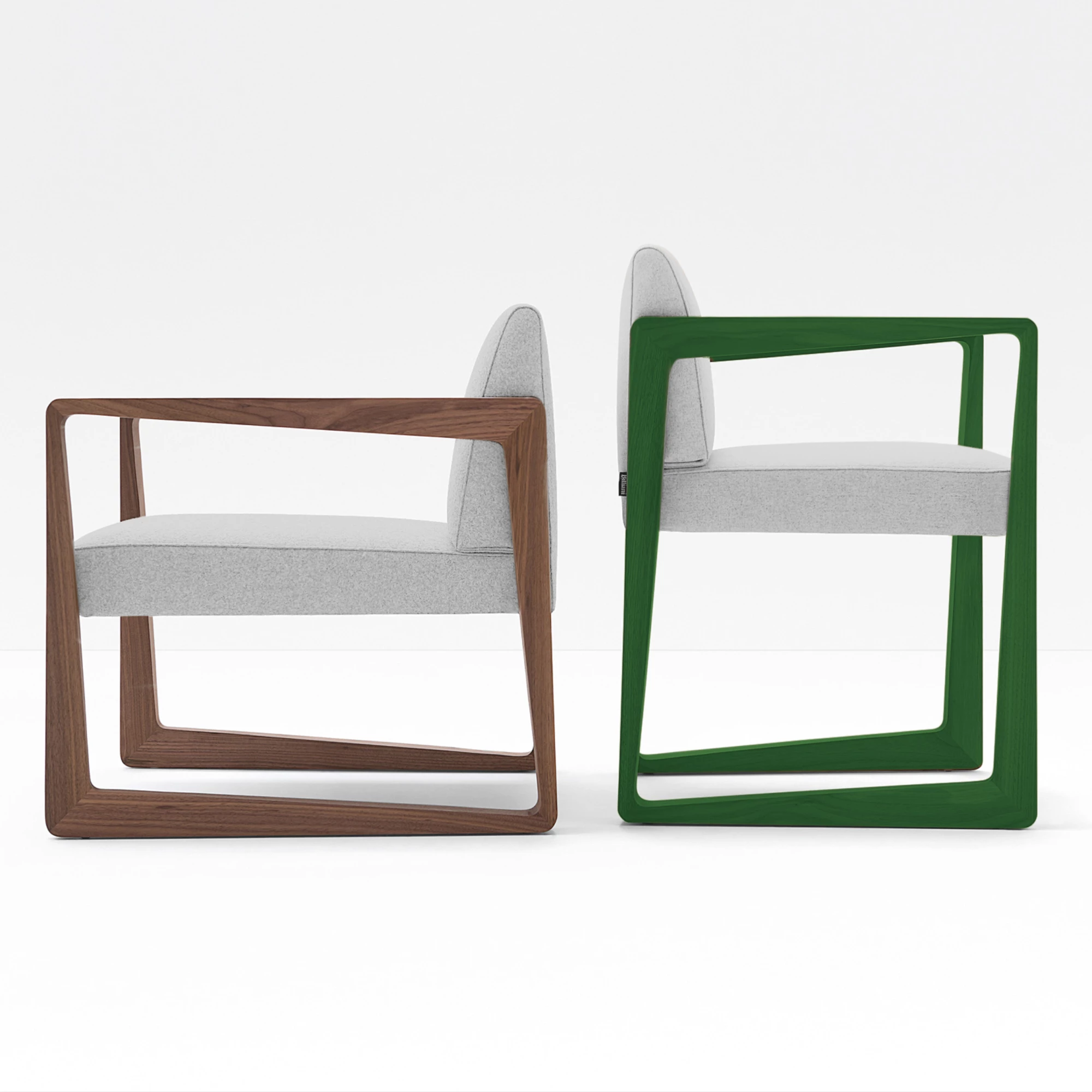 Der Lounge-Sessel Askew 5C36 besitzt einen stabilen Buchenholzrahmen in verschiedenen Beizfarben. Sitz und Rückenlehne sind gepolstert und in einer großen Auswahl an robusten, professionellen Stoffen oder Kunstleder erhältlich. Für jeden Horeca-Bereich geeignet, bietet dieser Stuhl vielseitiges Design und Anpassungsmöglichkeiten für verschiedene Einrichtungsstile.