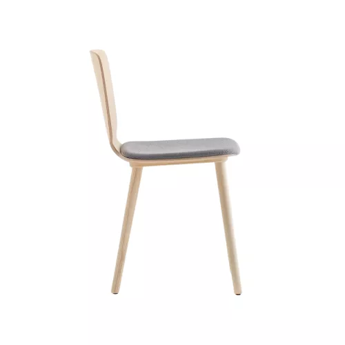 Stuhl mit geformter Sitzschale aus gebogenem Eschenfurnier in variabler Stärke und Beinen aus massivem Eschenholz. Erhältlich in modernen Farben: Blau, Azur, Dunkelgrün, Mintgrün, Rot, Rosa, Dunkelbraun und Braun. Eine stilvolle und bequeme Lösung für den Gastronomiebereich.