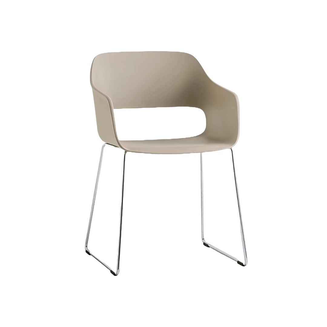 Die Babila-Kollektion bewegt sich mit großer Leichtigkeit zwischen Tradition und Innovation. Ihre Stärke liegt in der Einfachheit und Klarheit der Form – eine Hommage an zeitloses Design. Dieser Armlehnstuhl verfügt über eine Polypropylenschale und ein Kufengestell aus Ø11 mm Stahlstab – minimalistisch, funktional und ideal für den Objektbereich.