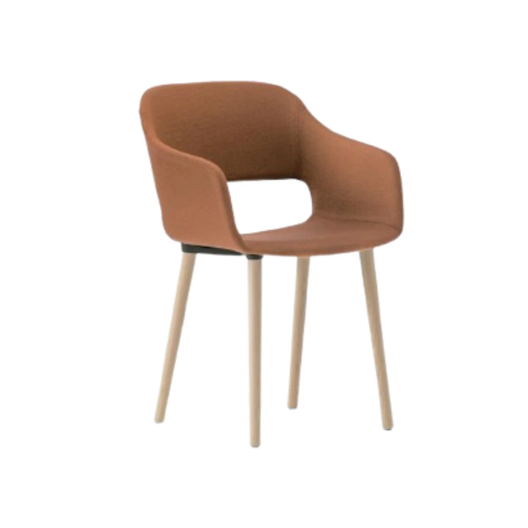Babila 2756 vereint Tradition und Innovation in einem eleganten und schlichten Design. Die klaren Linien und die zeitlose Form verleihen dem Sessel eine funktionale Ästhetik. Die gepolsterte Sitzschale ist wahlweise mit Stoff oder Kunstleder bezogen und ruht auf einem Gestell aus Druckguss-Aluminium mit massiven Eschenholzbeinen.