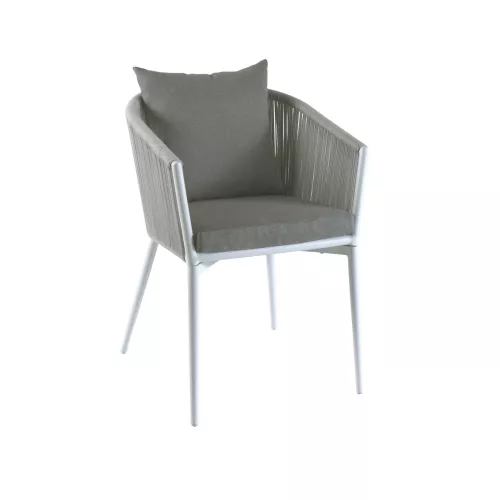 Beatrice A ist ein moderner Outdoor-Stuhl mit Armlehnen, perfekt für Gastronomieterrassen. Das Aluminiumgestell ist in Weiß oder Anthrazit erhältlich, der Sitz in Hell- oder Dunkelgrau. Robust, wetterbeständig und stilvoll – ideal für Außenbereiche.