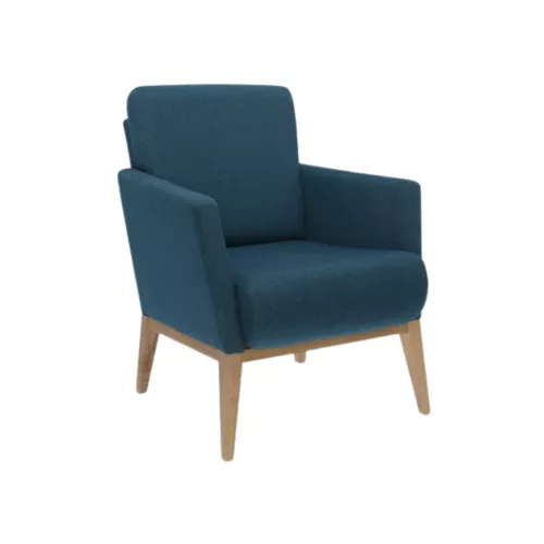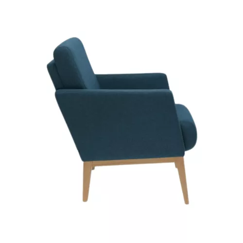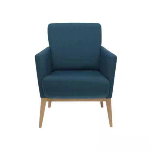 Der Bowen Sessel hat stabile Buchenholzbeine und ist vollständig gepolstert – Sitz, Rückenlehne und Armlehnen für optimalen Komfort. Erhältlich in vielen professionellen Stoffen oder Kunstleder sowie verschiedenen Holzfarben. Ideal für Lounges, Empfangsbereiche und Gastronomiebetriebe, vereint er Design mit Langlebigkeit.