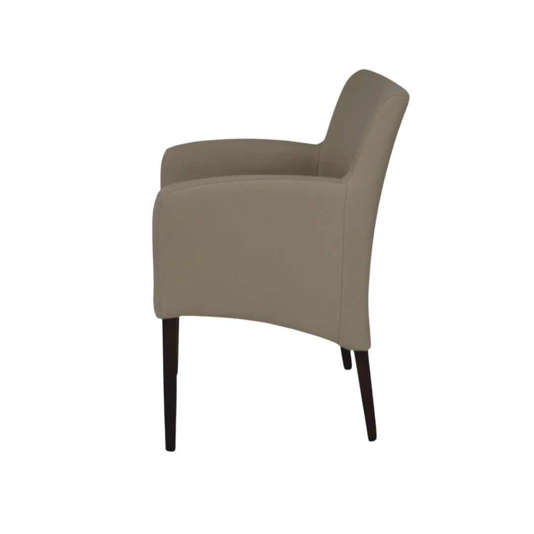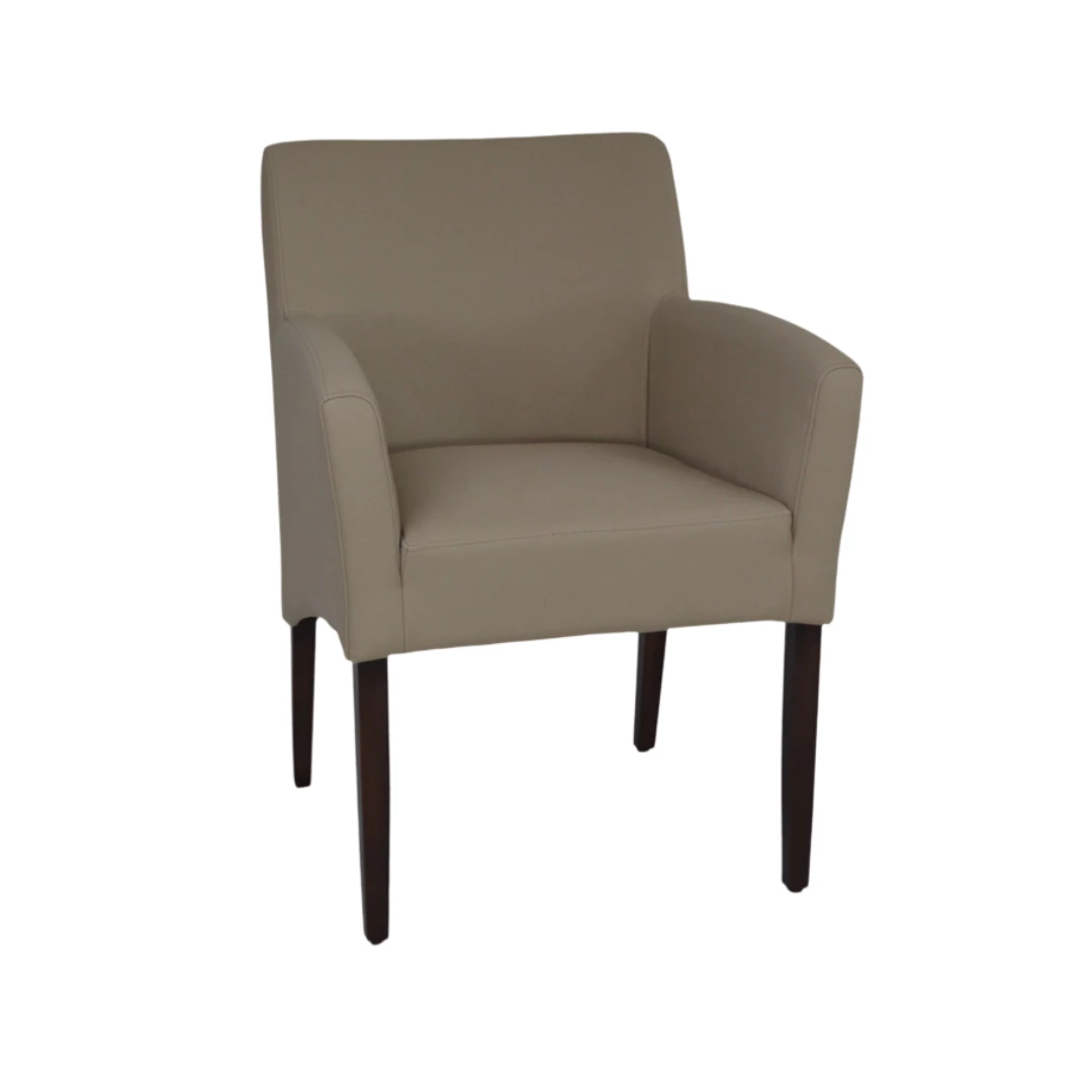 Claude ist ein gepolsterter Stuhl mit Armlehnen und stabilem Buchenholzrahmen. Er eignet sich perfekt für jede HORECA-Umgebung und bietet Komfort, Stil und Langlebigkeit. Die Polsterung ist in einer Vielzahl professioneller Stoffe oder Kunstleder erhältlich, passend zu jedem modernen Einrichtungsstil.
