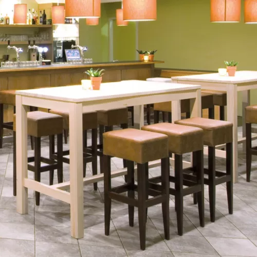 Der Cleo Bartisch ist eine elegante und robuste Lösung für das Gastgewerbe und bietet eine ausgewogene Balance aus zeitloser Eleganz und Funktionalität. Er ist aus massivem Eichenholz gefertigt, verfügt über eine wunderschön glatte Tischplatte und gerade, 7 x 7 cm große Beine, die sowohl optische Stabilität als auch dauerhafte Stabilität gewährleisten. Der Tisch ist in vielen verschiedenen Größen und Holzausführungen erhältlich und lässt sich nahtlos in verschiedene Bar-, Restaurant- oder Café-Einrichtungen integrieren. Für zusätzliche Haltbarkeit und Schutz in stark frequentierten Bereichen kann der Cleo Bartisch optional mit einer Edelstahl-Fußleiste ausgestattet werden. Ideal für Betriebe, die eine natürliche, langlebige und individuell anpassbare Lösung für ihre stark frequentierten Barbereiche suchen.