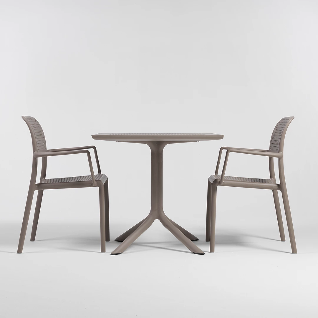 Der Clip-Tisch ist die ideale Lösung für professionelle Essbereiche im Freien und vereint Langlebigkeit, Stil und Funktionalität. Dank seines robusten Polypropylen-Rahmens hält er auch starker Beanspruchung in gut besuchten Restaurants, Cafés, Bistros und auf Terrassen stand. Erhältlich in einer breiten Palette eleganter Farben – Weiß, Anthrazit, Tortora, Agave und Tabak – fügt sich Clip nahtlos in jedes Dekor ein und schafft eine stimmige und einladende Atmosphäre. Seine leichte und dennoch robuste Konstruktion ermöglicht eine einfache Positionierung bei gleichzeitiger Stabilität und langlebiger Leistung. Damit eignet er sich perfekt für gewerbliche Umgebungen, in denen Zuverlässigkeit und Ästhetik gleichermaßen wichtig sind.