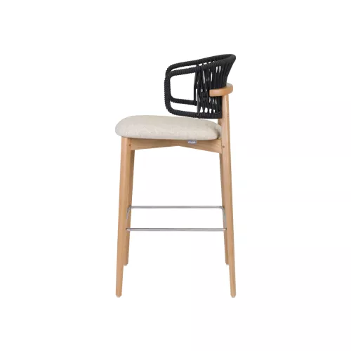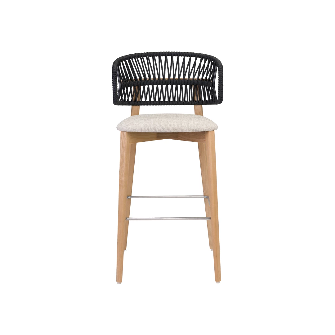 Der Coffee Cord BK ist ein hochwertiger Barhocker aus Holz für den Gastronomiebereich. Sein Eschenholzrahmen ist in verschiedenen Beiztönen erhältlich und verfügt über eine robuste Fußstütze aus Metall. Die Sitzfläche ist mit hochwertigen Stoffen bezogen, während die handgewebte Cord-Rückenlehne eine einzigartige optische Struktur verleiht. Ideal für stilvolle Barbereiche, Lounges und Gastronomiebereiche.