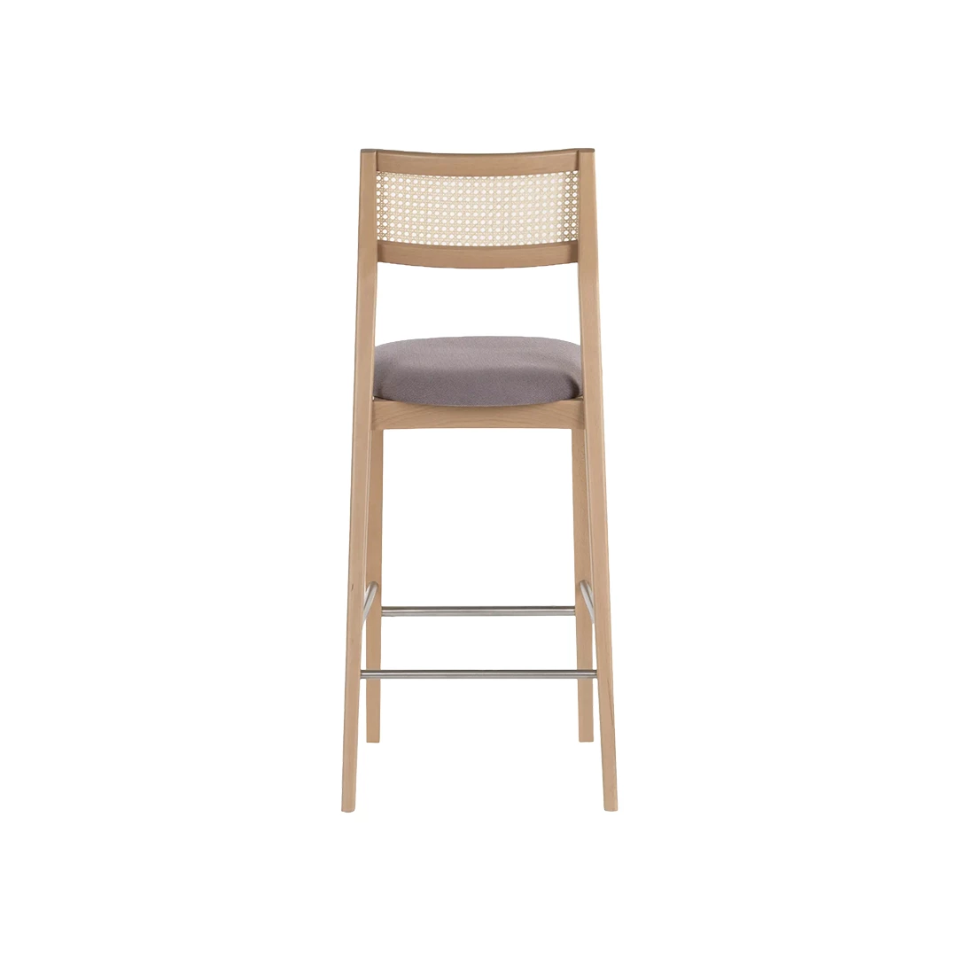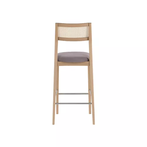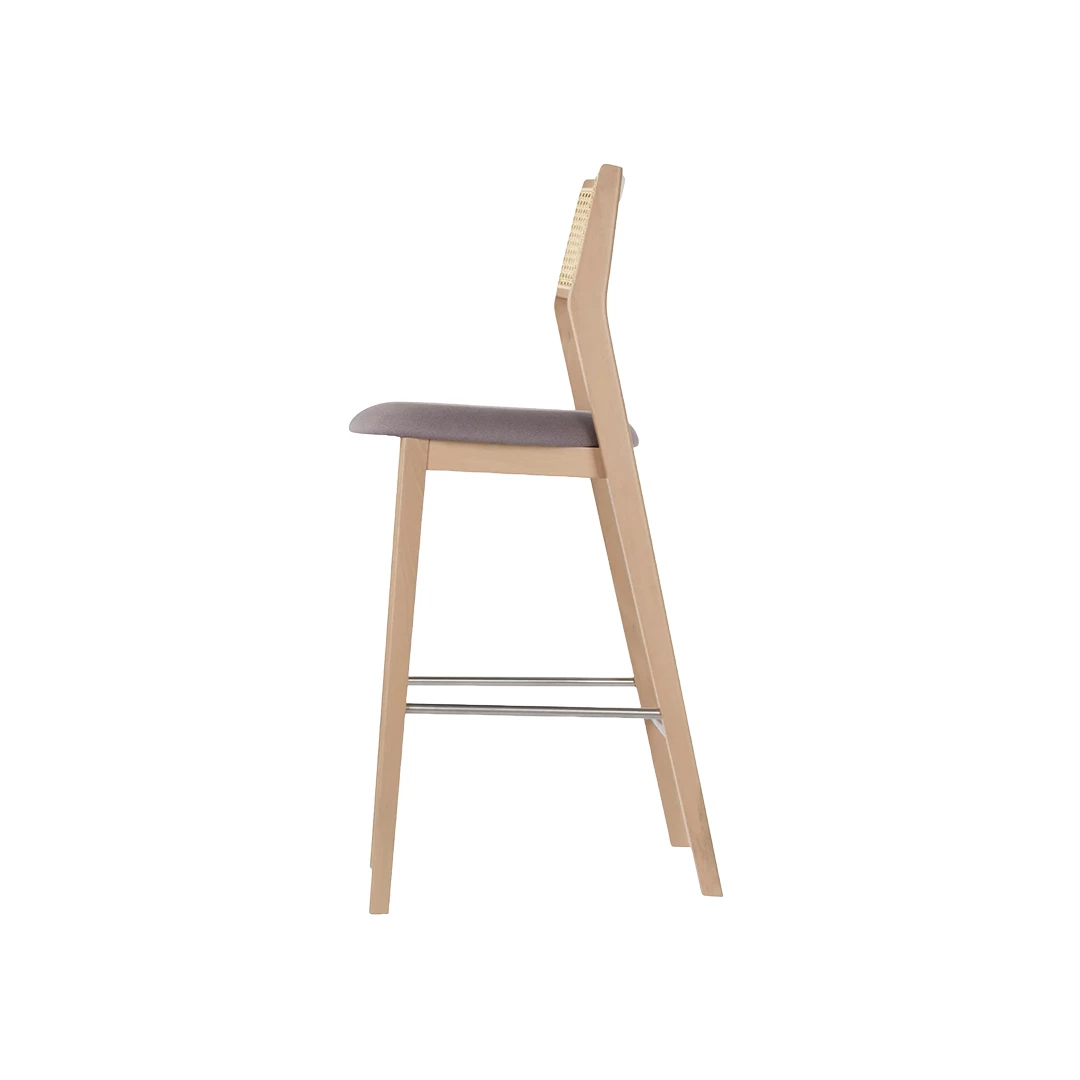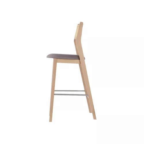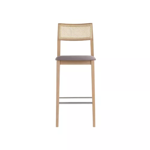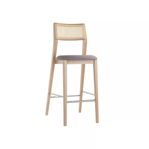 Der Barhocker Daisie BK vereint zeitlose Eleganz mit praktischem Design. Sein Gestell aus massivem Buchenholz, erhältlich in verschiedenen Beiztönen, harmoniert perfekt mit der Metallfußstütze und sorgt so für dauerhaften Komfort. Der gepolsterte Sitz – wahlweise mit hochwertigen Stoffen oder Kunstleder bezogen – ergänzt die elegante Rückenlehne aus Rattan. Ideal für Bars und die Gastronomie.