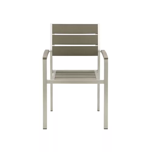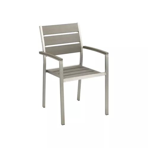 Der Dave Stuhl ist die ideale Kombination aus Stil und Funktionalität für Terrassen und Außenbereiche. Sein robustes Gestell aus gebürstetem Aluminium bietet hohe Widerstandsfähigkeit gegen Witterung und Korrosion. Sitzfläche und Rückenlehne bestehen aus grauen Polywood-Latten, die die natürliche Holzoptik mit der Langlebigkeit von Kunststoff verbinden. Der Stuhl ist leicht, stabil und pflegeleicht – perfekt für die gewerbliche Nutzung im Freien. Dave überzeugt durch modernes Design, Komfort und Beständigkeit.