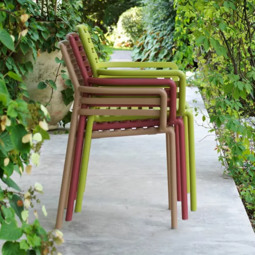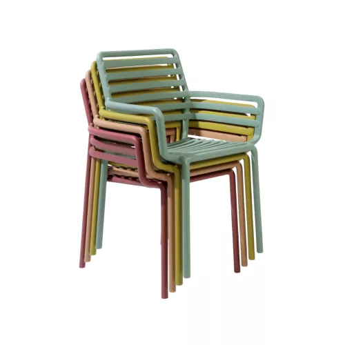 Der Doga A ist ein Monoblock-Stuhl mit Armlehnen – komfortabel und stilvoll zugleich. Er besteht aus durchgefärbtem Polypropylenharz mit Glasfaserverstärkung und UV-Zusätzen, was ihn wetterfest, langlebig und recycelbar macht. Der Stuhl hat eine matte Oberfläche, rutschfeste Füße und ist stapelbar für platzsparende Lagerung. Erhältlich in verschiedenen Farben: Weiß, Anthrazit, Cappuccino, Minze, Agave, Birne, Marsala und Tabak. Ein passendes Sitzkissen ist auf Anfrage erhältlich.