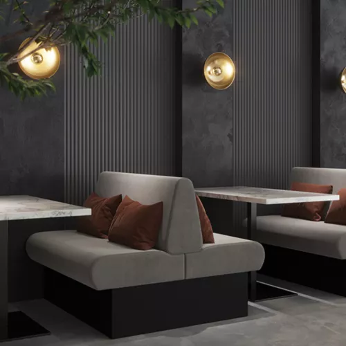 Die Donald Double ist eine modulare Sitzbank im amerikanischen Stil, ideal für Gastronomiebereiche. Mit hochdichtem Schaumstoff für langlebigen Komfort ausgestattet. Zahlreiche Bezüge aus Stoff oder Kunstleder wählbar. Auf Maß gefertigt – passt zu jedem Interieur.