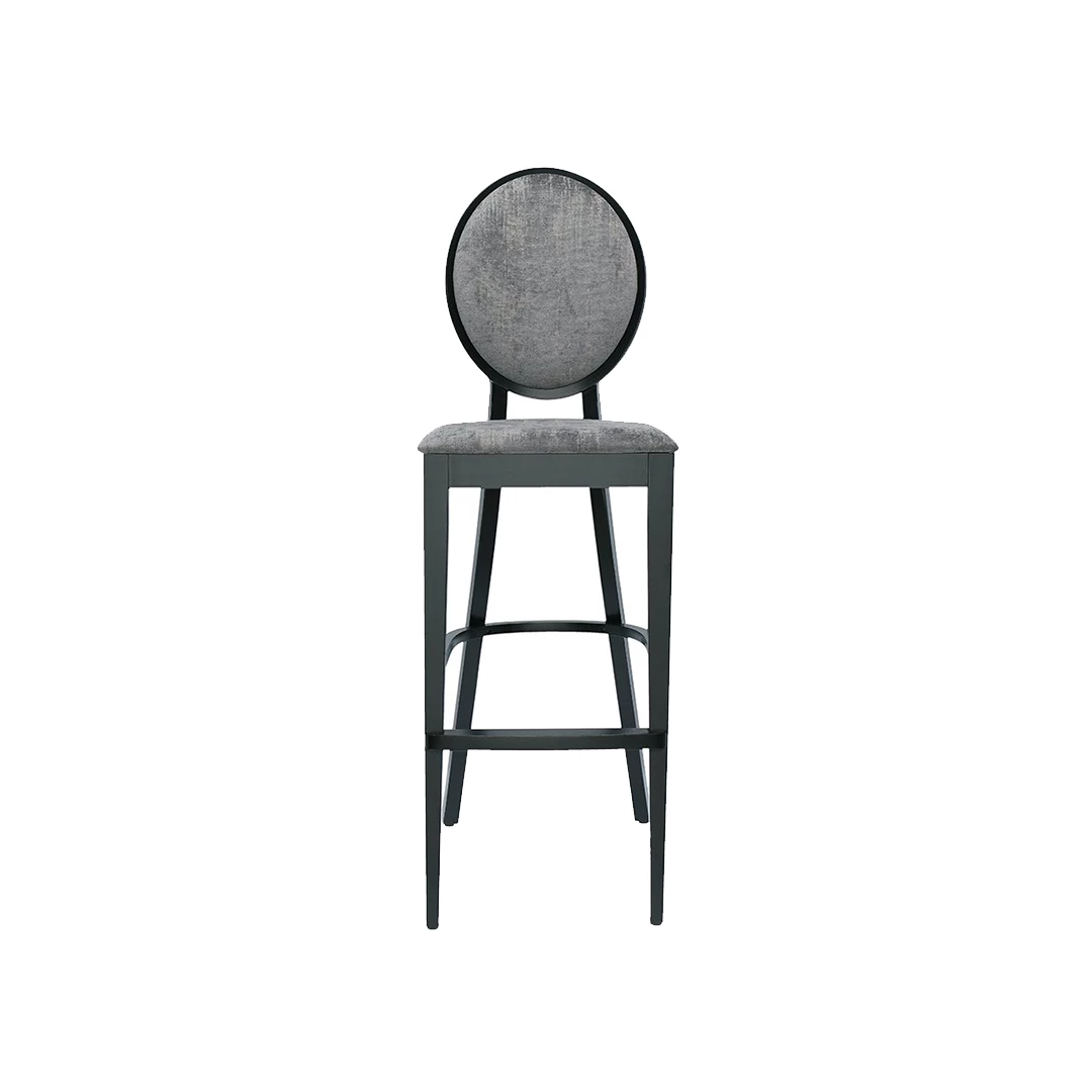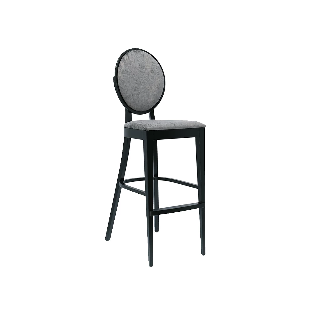 Der Holzbarhocker Doris BK vereint klassisches Design mit modernem Komfort. Er besteht aus einem massiven Buchenholzrahmen mit Holzfußstütze und verfügt über eine gepolsterte Sitzfläche und Rückenlehne. Erhältlich in einer großen Auswahl an professionellen Stoffen oder Kunstleder sowie verschiedenen Holzbeizenfarben, eignet er sich perfekt für Bars und Gastronomie.