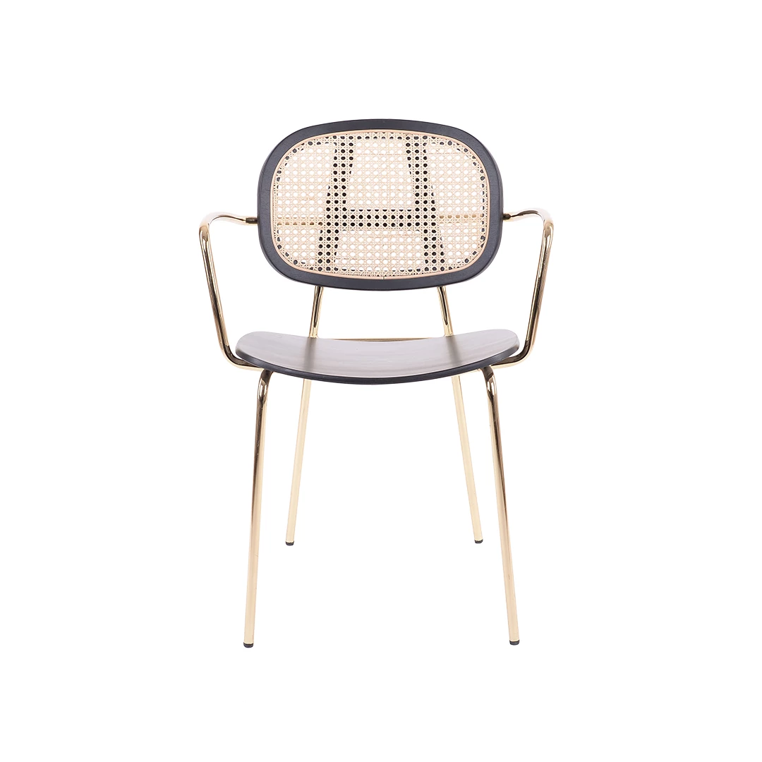 Eternity ist ein moderner Stuhl mit Armlehnen, Metallgestell, Furniersitz und Rückenlehne aus Wiener Geflecht. Mit individuell wählbaren Farben für Gestell und Holz passt er sich jedem Einrichtungsstil an.