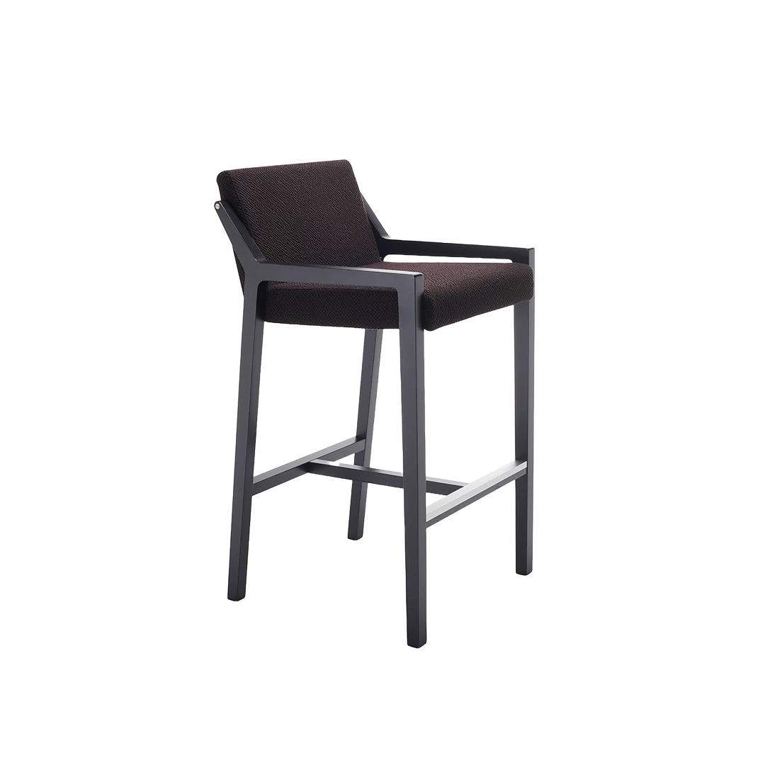 Der Barhocker Fred BK aus Holz verkörpert Gastfreundschaft und vereint Komfort mit raffiniertem Design. Sitz und Rückenlehne sind weich gepolstert und in verschiedenen Stoffen oder Kunstleder erhältlich. Sie ruhen auf einem stabilen Buchenholzgestell mit Aluminium-Fußstütze. Die sanften Linien der Schale bilden einen schönen Kontrast zur robusten Konstruktion und schaffen eine einladende, zeitlose Ästhetik.