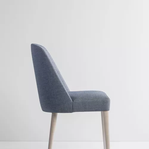 Gomo LU S besticht durch fließende, elegante Linien und wird aus robustem Buchenholz mit verschiedenen Beizfarben gefertigt. Die goldenen Beinabschlüsse verleihen einen Hauch von Luxus. Mit professionellen Stoffen oder Kunstleder bezogen, ist dieser Stuhl ideal für anspruchsvolle HORECA-Umgebungen.