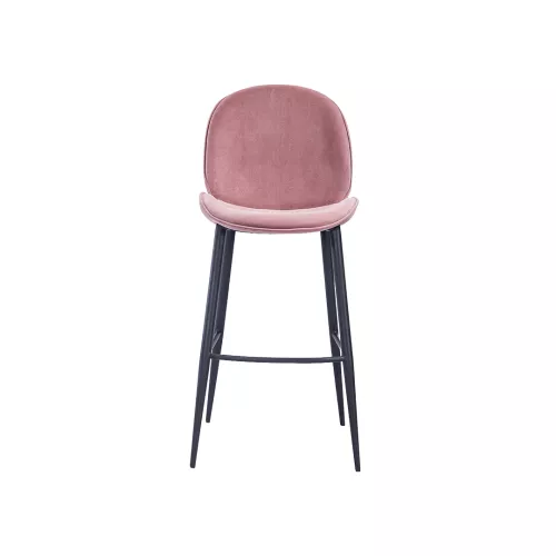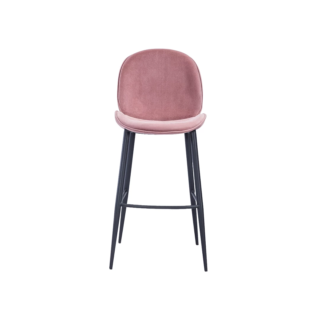 Jim BK 003 B ist ein stilvoller Barhocker mit schwarzem Metallgestell, gepolsterter Sitzfläche und abgerundeter Rückenlehne. Die große Auswahl an Stoffen erlaubt individuelle Gestaltung. Seine sanften Rundungen und das moderne Design machen ihn ideal für stark frequentierte Gastronomiebereiche.