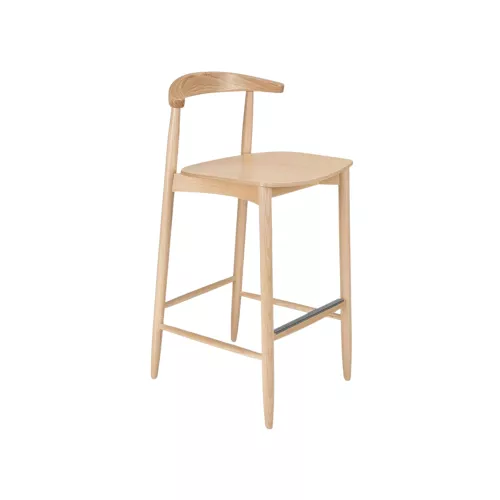 Dieser elegante Barhocker aus massivem Buchenholz besticht durch seine formschönen, sich verjüngenden Beine und die geschwungene Rückenlehne, die die natürliche Maserung des Holzes wunderschön zur Geltung bringt. Die Fußstütze aus gebürstetem Edelstahl verleiht ihm eine moderne Note und garantiert gleichzeitig Langlebigkeit und Komfort. Abgerundet wird das Design durch einen passenden Holzsitz. Dieses Möbelstück verkörpert zeitloses Design und solide Handwerkskunst – ideal für stilvolle Gastronomiebetriebe.