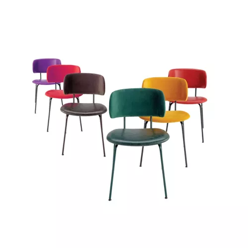 Der July S ist ein eleganter Stuhl mit stabilem Metallgestell sowie gepolsterter Sitzfläche und Rückenlehne. Die geschwungene Rückenlehne bietet hohen Komfort. Das Gestell ist in jeder RAL-Farbe erhältlich, die Polsterung in hochwertigen Stoffen oder Kunstleder.