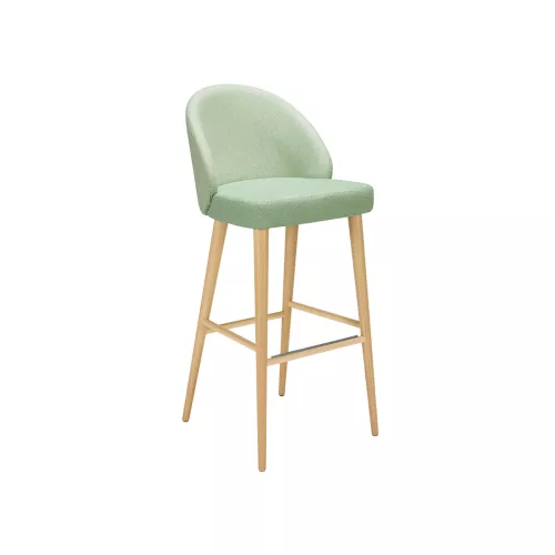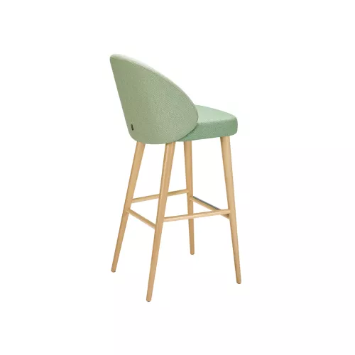 Ein eleganter und vielseitiger Barhocker mit gepolsterter Sitzfläche und Rückenlehne, der Komfort und zeitlose Eleganz vereint. Sein schlichtes und dennoch stilvolles Design fügt sich mühelos in jeden Einrichtungsstil ein, von modern bis klassisch. Die Beine aus gebeiztem Buchenholz verleihen dem Hocker natürliche Wärme und Langlebigkeit. Die Sitzfläche aus hochdichtem Schaumstoff garantiert dauerhaften Komfort und Widerstandsfähigkeit auch bei intensiver täglicher Nutzung. Erhältlich in einer großen Auswahl an professionellen Stoffen mit einer vielfältigen Palette an Farben und Texturen, passend für jedes Gastronomieambiente.