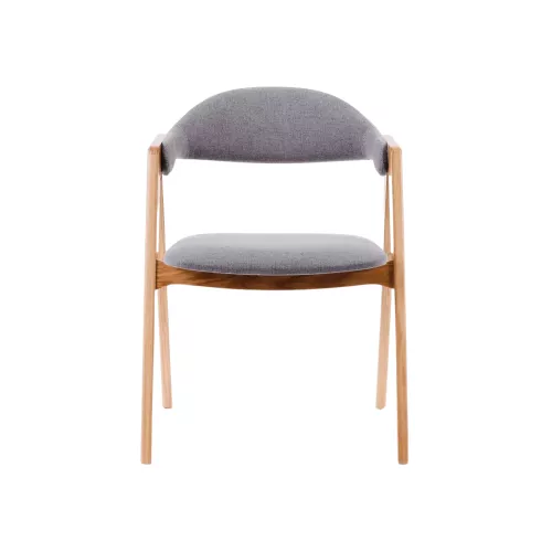 Bringen Sie eine Kombination aus moderner Eleganz und Komfort in Ihren Essbereich mit diesem Restaurantstuhl mit Eichenholzrahmen. Der Stuhl verfügt über ein fein verarbeitetes Gestell aus Eiche, das sowohl Langlebigkeit als auch eine warme, natürliche Optik garantiert. Sitz und Rückenlehne sind mit einem hochwertigen grauen Stoff gepolstert und sorgen für ein bequemes und stilvolles Sitzerlebnis.