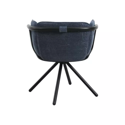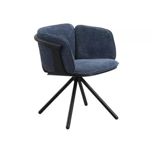 Modern gepolsterter Stuhl mit pulverbeschichtetem Metallgestell und markantem Spider-Fußkreuz mit vier Beinen. Die umlaufende Rückenlehne mit Armstützen sorgt für Komfort, während das kompakte Design perfekt für HoReCa-Lounges oder Essbereiche geeignet ist. In verschiedenen Stoffen oder Leder erhältlich.