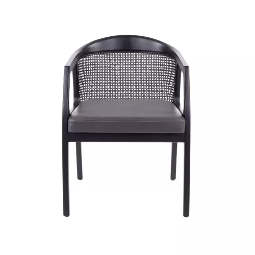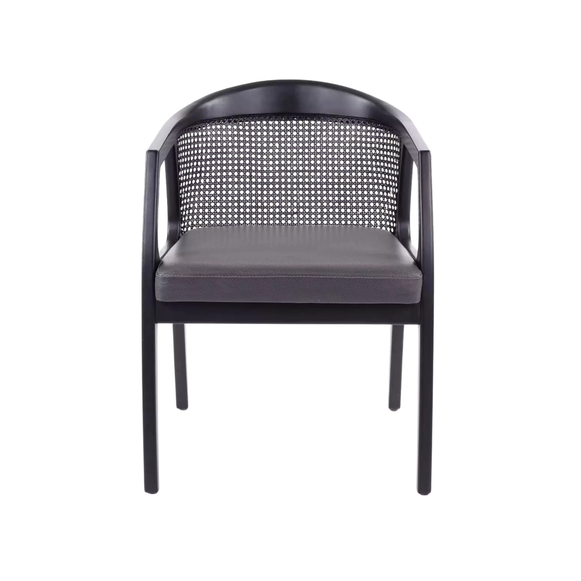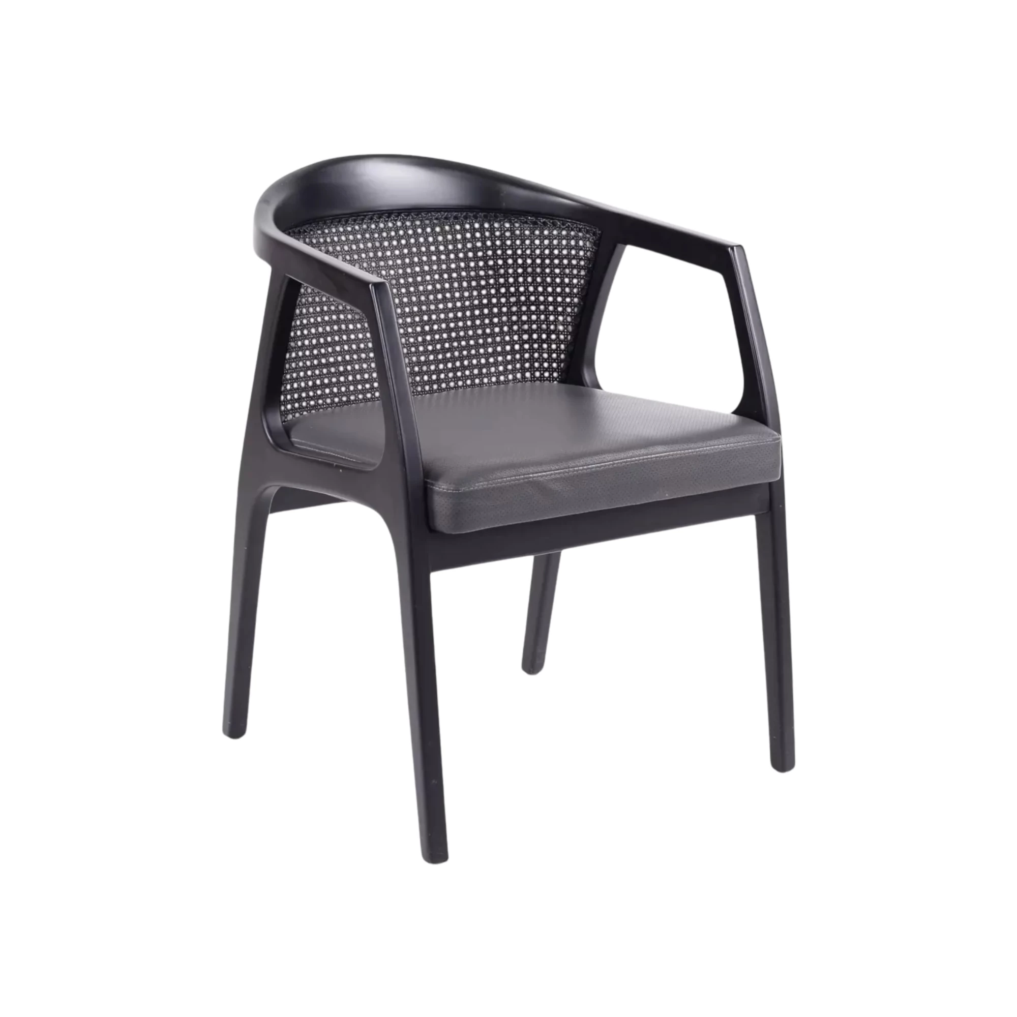 Dieses moderne Armlehnstuhl beeindruckt durch außergewöhnliche Handwerkskunst und wertet jeden Essbereich sofort auf. Das Design hebt das elegante schwarze Wiener Geflecht und die sanft geschwungene Rückenlehne hervor – perfekt für moderne Restaurants oder gastronomische Betriebe mit hohem Gästeaufkommen. Armlehnstühle sind besonders in gehobenen Restaurants und größeren Veranstaltungsorten wegen ihres zusätzlichen Komforts beliebt.