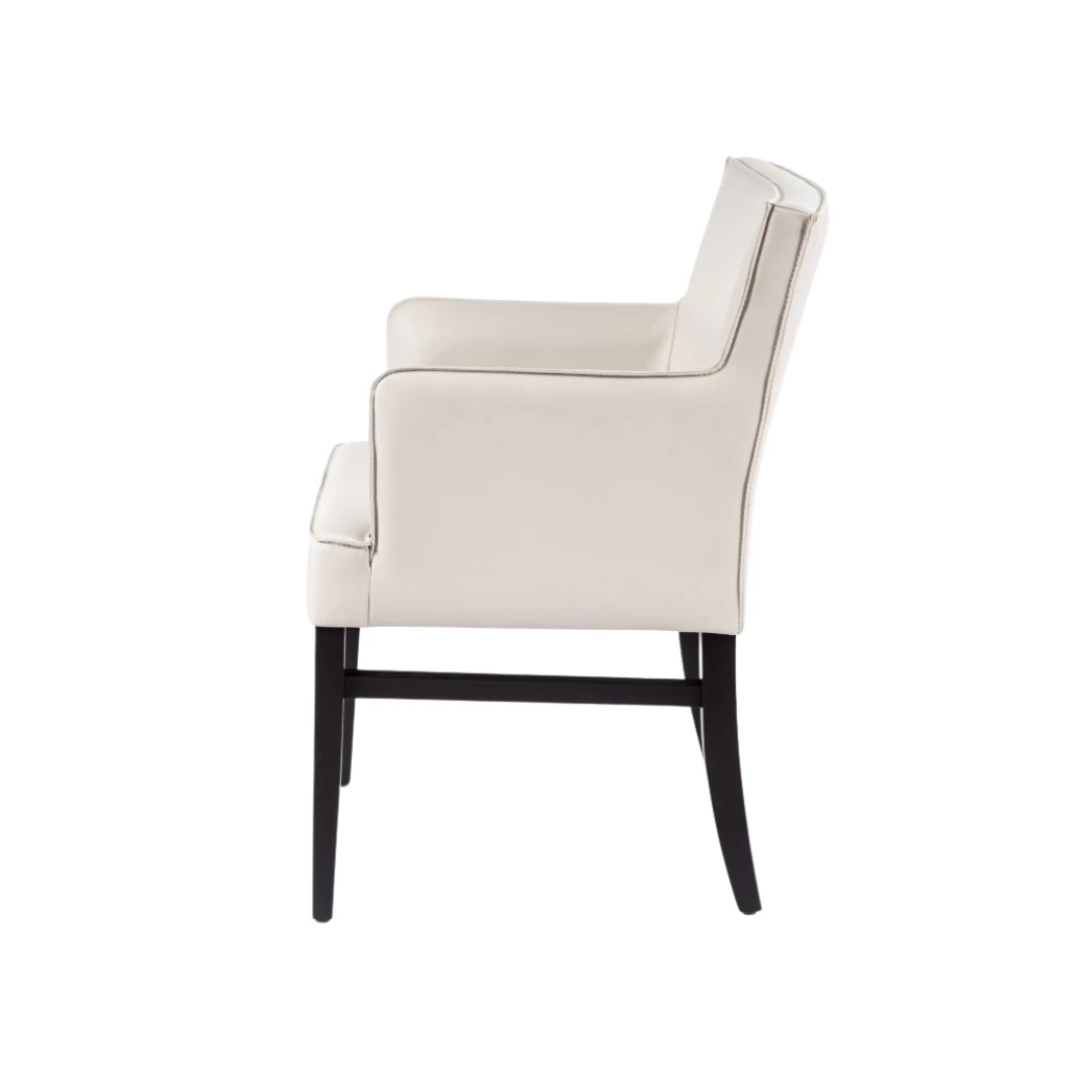 Eleganter Sessel mit klaren Linien und integrierten Armlehnen – ideal für Gastronomie und Objekteinrichtung. Sitz und Rückenlehne sind vollständig gepolstert und bieten hohen Komfort, während das stabile Gestell intensive Nutzung ermöglicht.