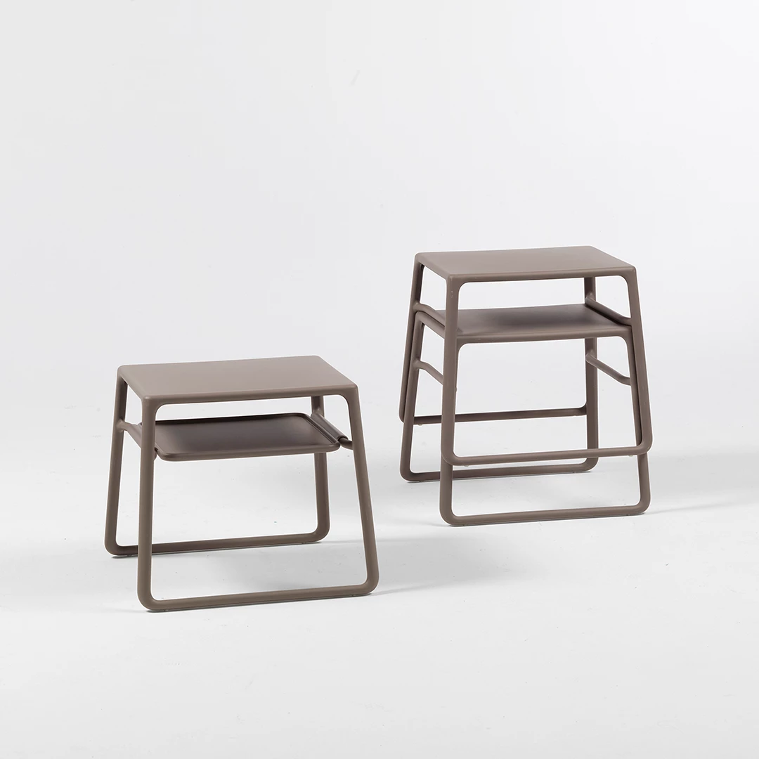 Pops Side Table: langlebiger Polypropylen-Rahmen in Weiß, Anthrazit oder Tortora. Stilvoll, wetterbeständig und ideal für Gastronomie-Terrassen, Cafés und Bistros. Leicht, pflegeleicht, perfekt für gewerbliche Außenbereiche.