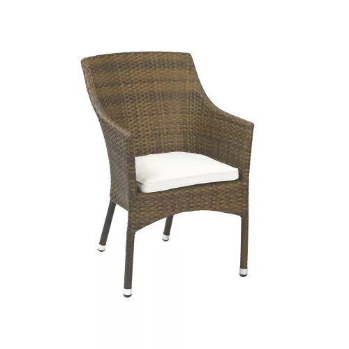Sady ist ein Outdoor-Stuhl mit Armlehnen, speziell für den HORECA-Bereich. Der pulverbeschichtete Aluminiumrahmen und das PE-Wicker mit Roca-Look verbinden Langlebigkeit mit natürlichem Stil. UV- und wetterbeständig, stapelbar. Optional mit gepolstertem, wasserabweisendem Sitzkissen erhältlich.