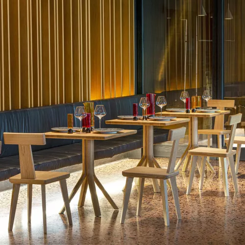 Der Salzburg Stuhl aus natürlichem Buchenholz überzeugt durch klare Linien und hohe Funktionalität. In Schwarz oder lackierter Ausführung erhältlich, bietet die T-förmige Rückenlehne Komfort und Mobilität. Dank seiner ausgewogenen Proportionen passt Salzburg perfekt in jedes Horeca- oder Objektumfeld.