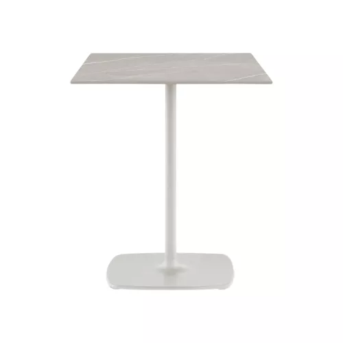 Das Tischgestell Stylus zeichnet sich durch sein minimalistisches Design und die organische Form aus, dank der schlanken Mittelsäule und den abgerundeten Ecken der flachen quadratischen Basis. Sehr stabil und geeignet für sowohl quadratische als auch runde Tischplatten.