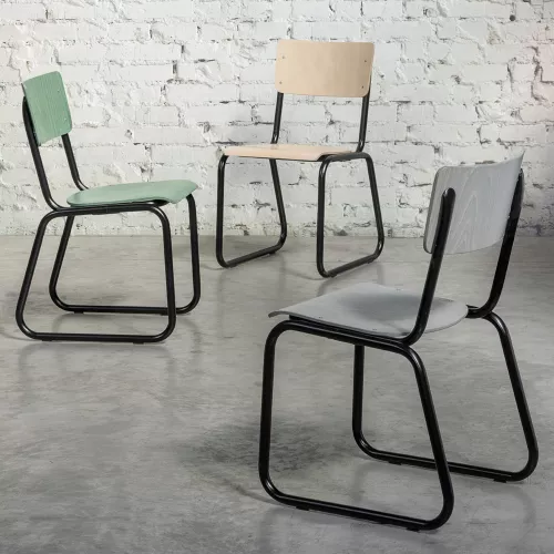 Der Suzanne S Sled Stuhl vereint natürliche Eleganz mit industrieller Robustheit. Sitz und Rückenlehne bestehen aus naturbelassenem Buchenholz und verleihen dem Stuhl eine zeitlose Ausstrahlung. Das schwarze Metallgestell in Schlittenform sorgt für Stabilität und einen modernen Look. Perfekt für Essbereiche, Cafés, Büros oder stilvolle Loungebereiche.