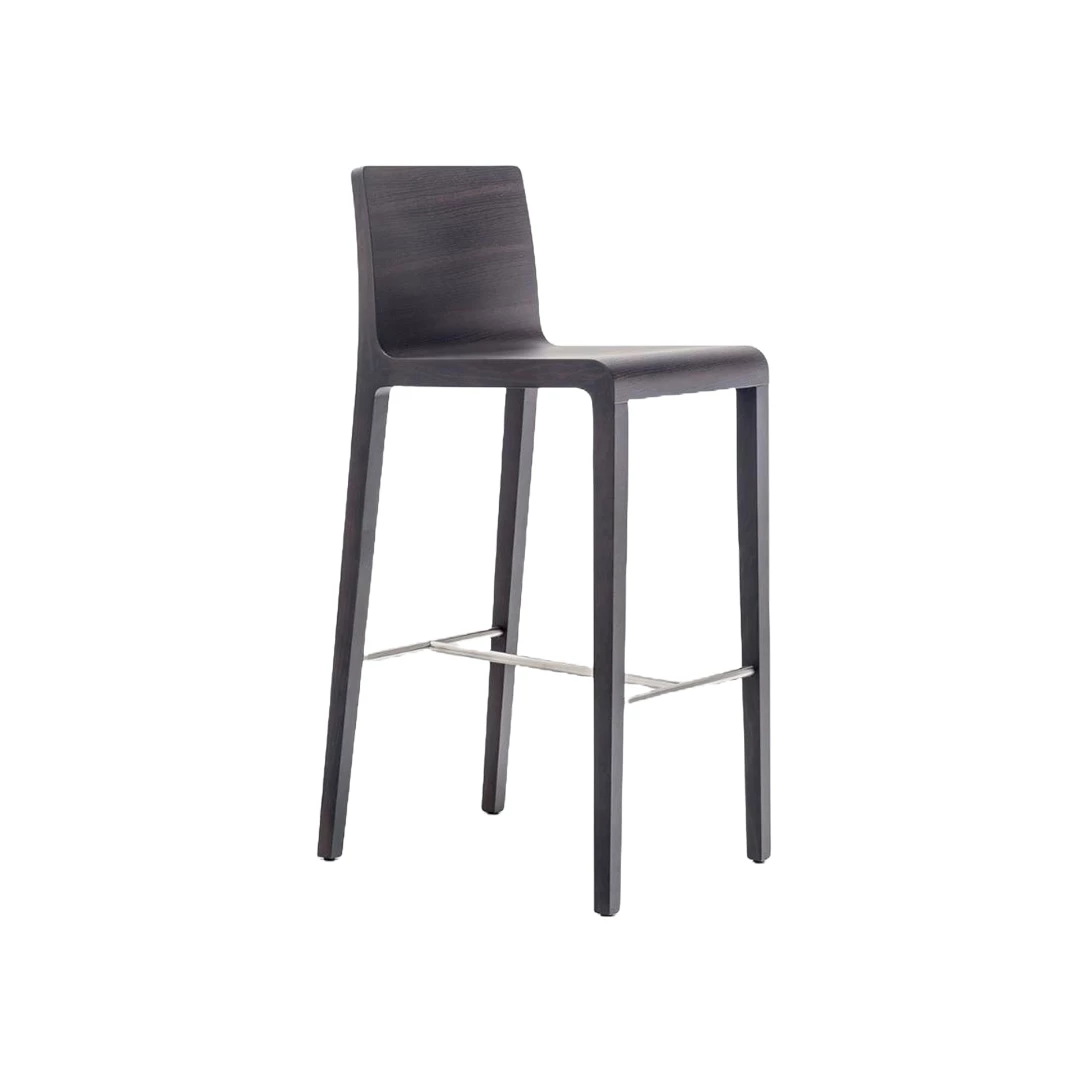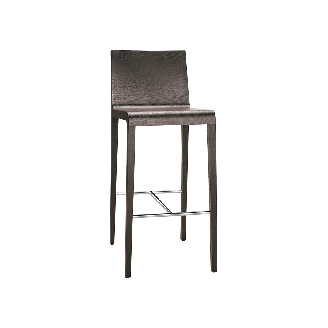 Young 426 ist ein Barhocker speziell für den Einsatz im Gastgewerbe. Die gebogene Sitzschale aus Formsperrholz, das stabile Eichenholzgestell und die Fußstütze aus Edelstahl machen ihn ideal für Restaurants, Bars und Cafés.